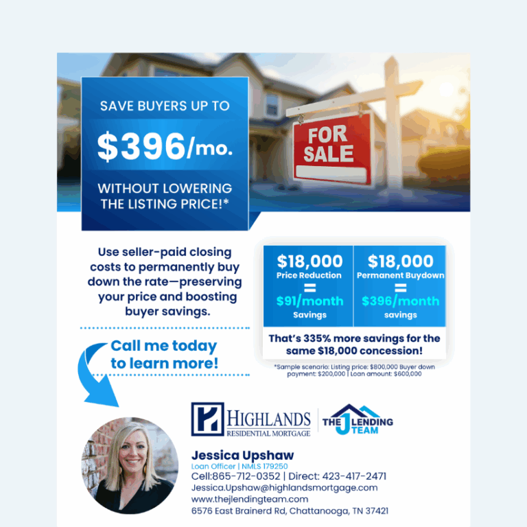 A simple, visual breakdown showing how seller concessions can be applied to a permanent rate buydown vs. a temporary one, protecting listing value while creating long-term savings for buyers. Available in general format or customized to a specific property scenario.