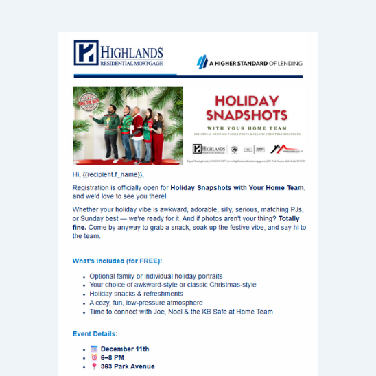 Highlights creative loan solutions like DSCR, jumbo, business cash flow, and equity bridge options. This piece is designed to show how Highlands can meet borrowers wherever they are on their path to homeownership.